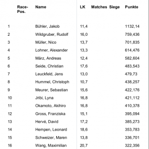 Ab sofort möchten wir jedes Jahr den Herrenspieler, die Damenspielerin und den/die Jugendspieler/in mit den meisten gesammelten LK Punkten belohnen. … Weiterlesen…LK-Race Gewinner 2022